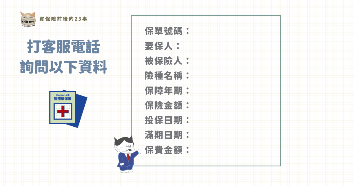 打客服電話詢問所屬的保險公司或是部分保險公司可以註冊會員登入所屬官網查詢。